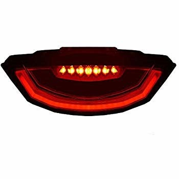 Feux fumé avec clignos intégrés, éclairant en rouge avec une intensité variable lorsque le stop ou la veilleuse sont actionnés. Réplique exacte du feu d'origine, donc avec une installation très facile, suppression de la bavette souvent disgracieuse.