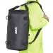 Waterbestendige reistas in cilindervorm. Zwarte kleur en 30 liter inhoud.
