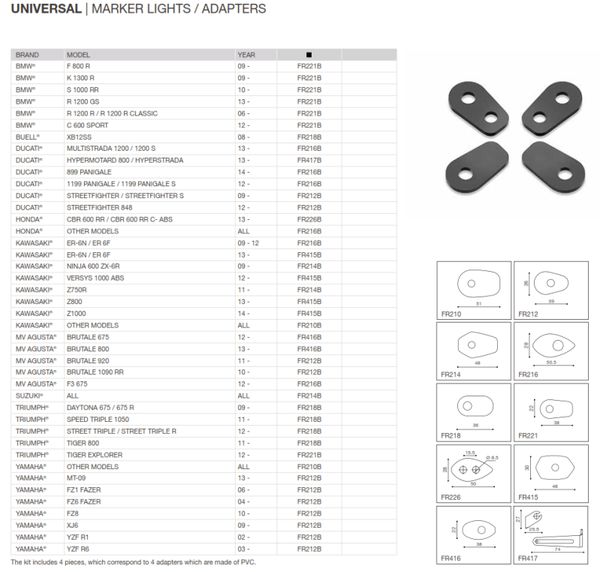 Avec 1 set vous pouvez monter vos deux clignotants. Cherchez dans le pdf ci-dessous votre modèle et sélectionnez la bonne dimension.