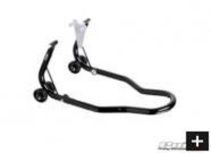Universele paddock stand adaptor. Hiervoor moet de motor niet uitgerust zijn met diabolo's. Deze klemt zich onder de achterbrug.